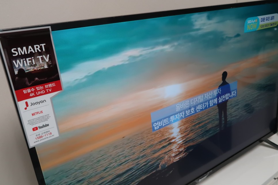4K UHD 고화질을 지원하는 주연 43인치 스마트TV로 유튜브 영상을 감상하고 있는 모습을 촬영해봤습니다.
