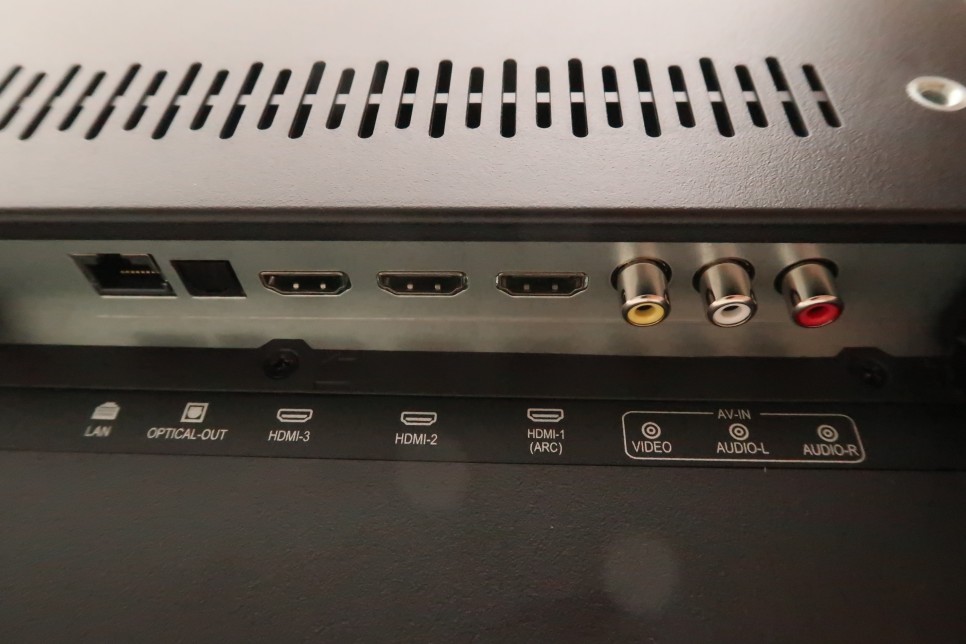 외부 입력에서 최근 가장 많이 사용하는 HDMI 2.0 단자는 3개까지 접속 가능합니다. 그리고 LAN 포트가 있어서 무선/유선 네트워크 연결이 모두 가능한 제품입니다.
