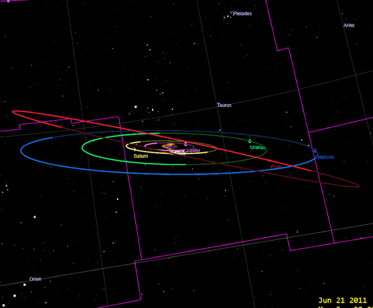 3.3년의 주기를 가진 엔케 혜성(2P/Encke)/(출처: 위키백과) 장주기 혜성은 태양 공전 주기가 200년에서 수만 년에 달합니다.이러한 기원은 태양계 외곽의 힐스 구름(Hills cloud)이나 올트(Oort cloud)일 것으로 예측됩니다.대부분 이심률이 1에 육박하는 매우 가늘고 긴 타원형 궤도를 가지고 있습니다.태양 부근에서 이심률이 1인 포물선 궤도와 1을 넘는 쌍곡선 궤도의 경우에도 태양계를 벗어나지 않고 태양에서 멀어지다 다시 1안쪽으로 돌아오는 경우가 많습니다.두 번째로 발견된 성간천체(Interstellarobject)이자 최초로 발견된 성간혜성(Interstellarcomet)인 2I/보리소프(Borisov)는 이심률이 3.357로 태양계 밖에서 진입한 것으로 알려져 있습니다.