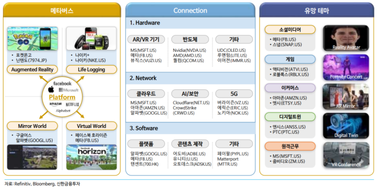 하지만 각 개별 종목을 고르기 어려워 아직 한 종목이 메타버스를 선점했다.확신하기는 어려워요.