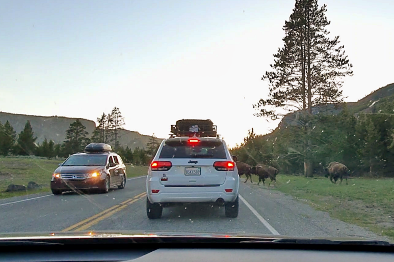 때로는 도로 정체가 이런 야생동물에 의해 발생하기도 한다. 예를 들어, Buffalo(Bison)가 도로를 가로질러 지나가기도 하는 상황이다. 이런 경우, 제발 내 차 바로 앞을 지나가주세요!!! 하면서 멍하니 그들을 바라보게 된다. 연예인을 기다리는 팬들이 이럴까? 뭔가 나 겪어본 것 같아.ㅎㅎ