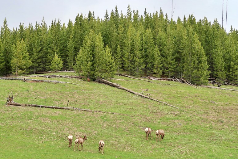 Female Elk 흰 엉덩이를 누르고 유라초를 먹고 있는 암사슴(Female Elk)과