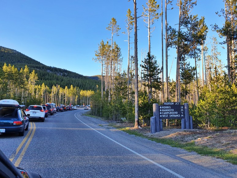 첫날, 점심 무렵이 되어 동쪽 출구를 통해서 들어 왔을 때는, 정체를 전혀 경험하지 않았는데, 서쪽 출구에서 하루를 시작하면 어중간한 아침에 일정을 시작하면 서쪽 출구에서 3개의 길로 나뉘는 Madison Junction까지 정체를 경험하게 된다. 오전 78시 이전에 입구를 통과하는 것이 좋다.