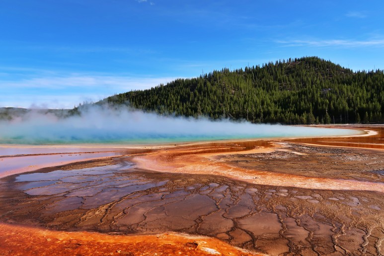 Grand Prismatic Springs 동쪽의 경우, 산 속의 거대한 폭포(Canyon Village)와 호수(Lake Village)가 중심이 되어 있는데, 각각의 위치에 따라 분위기가 달라 매일 관광하기에 지루하지 않았다.