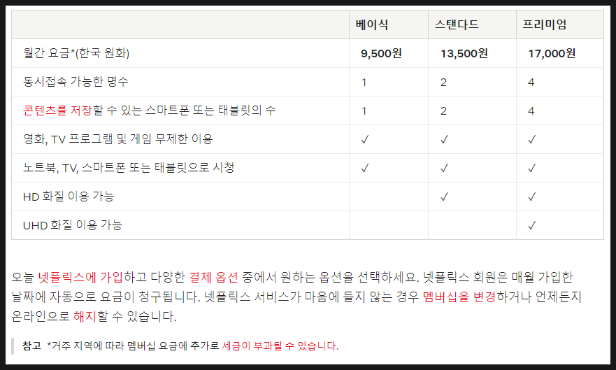 요즘 가정에 따르면 OTT 서비스를 사용하지 않는 쪽보다는 하나 또는 둘, 셋 가입해 놓는 게 꽤 많죠.사실 몇 달 전까지만 해도 넷플릭스 할인을 받는 방법으로 3개월간 체험해주는 서비스도 있었고 필자 역시 또 다른 OTT를 함께 사용했는데요.워낙 인기가 많아서 그나마 없어진 상항입니다. 가격이 더 오르는 현상이 생겼습니다.그럼 가격부터 좀 알아볼게요.베이직이란 1대의 기기로 시청할 수 있으며 스탠다드의 경우 2대를 동시 접속할 수 있습니다.하지만 대부분의 분들은 프리미엄 요금제를 선택하고 있습니다.그 이유는 몇 가지 있습니다.