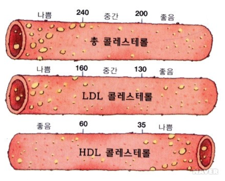 출처 : 세브란스 건강칼럼 혈중지질은 지질단백(lipoprotein) 형태로 체내에서 이동한다. 지질단백질은 chylomicron, VLDL, LDL, HDL로 분류된다.-LDL 수용체는 세포표면 수용체로 VLDL과 LDL에 결합 가능하며 콜레스테롤을 세포 내로 흡수해 혈중에서 제거하는 역할을 한다. 간세포 내 콜레스테롤 농도가 낮을 때 LDL 수용체 합성이 촉진되는-HDL은 말초세포에 있는 콜레스테롤을 간으로 운반해 관상동맥이나 관상동맥질환을 유발할 수 있는 혈관조직에서 콜레스테롤을 제거하는 역할을 한다.